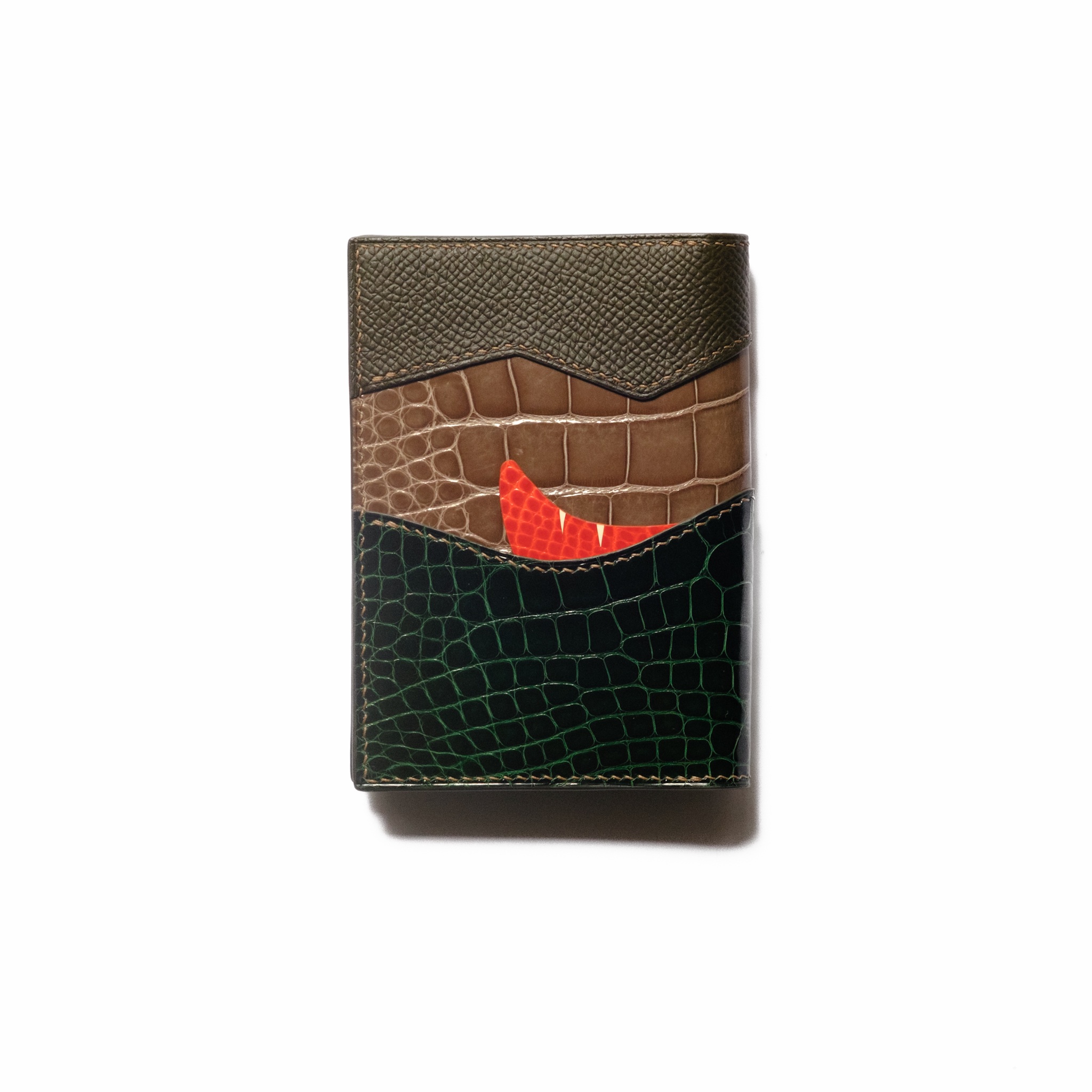 The Tiny T-Rex Pocket Wallet stands out with its playful little crocodile motif, paired in a refined Green and Orange tone. Compact yet practical with multiple card slots, it brings both elegance and a fun twist, a stylish piece that’s truly one of a kind.